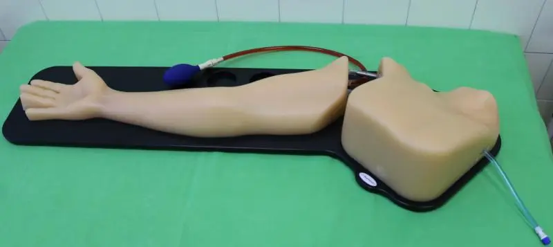 A perifériás erek ultrahang vezérelt punkcióját, illetve a perifériás erekbe - UH vezérelten - történő kanül behelyezésének gyakorlását elősegítő szimulátor. Realisztikus, tűvel szúrható erek, melyben manuálisan véráramlás generálható egy külső pumpa segítségével. A betegbiztonságot fokozza, a hallgató manualitását és az ultrahang használatában való jártasságát fejleszti. |